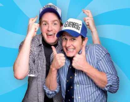 Directed by Neil Gooding, the show starred David Harris as Bud and James Millar (Matilda) as Doug, the writers of their brand new musical about the inventor of the printing press. Each performer plays the 30 different characters between them, using trucker hats with each character's names written on them to differentiate each character.